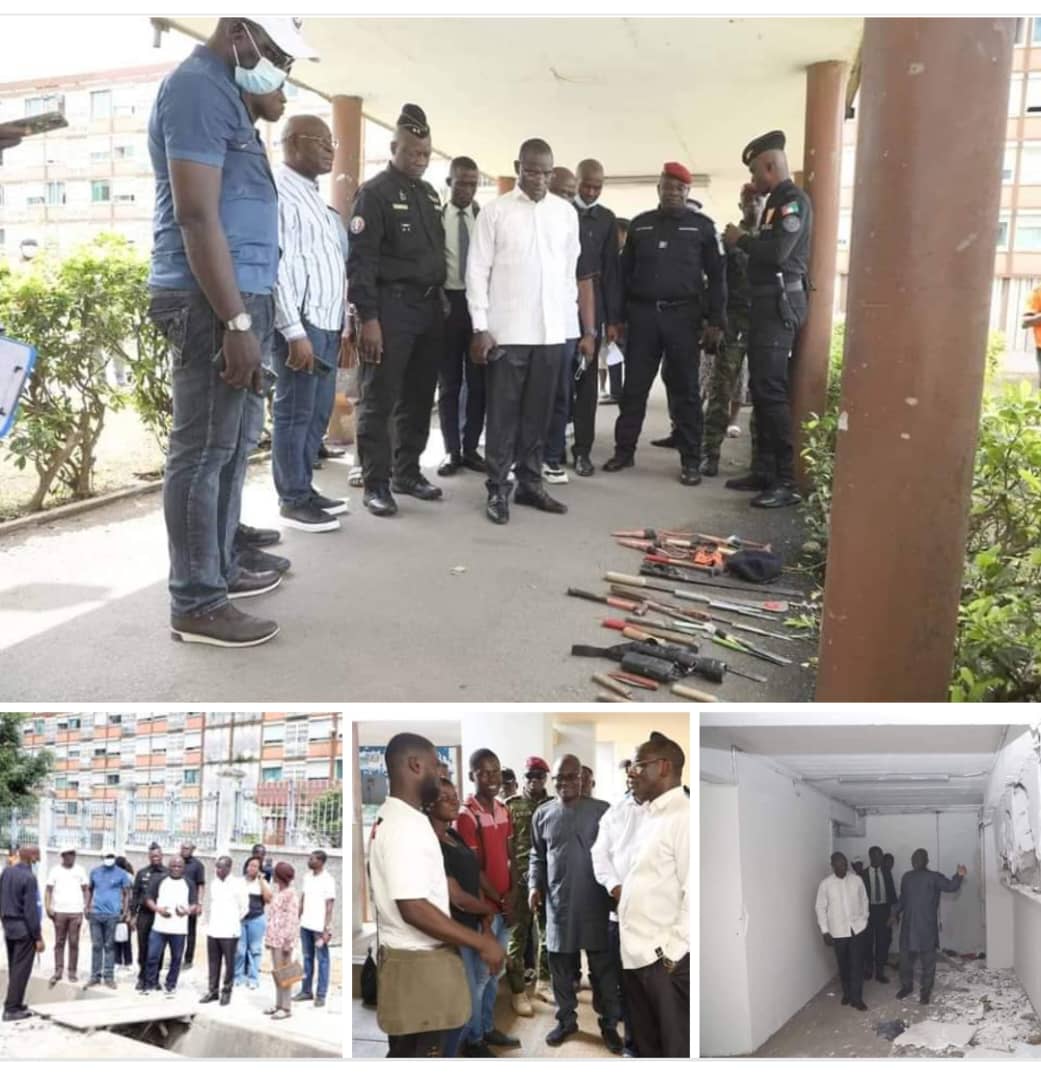 À chacune de ces étapes, le ministre Vagondo Diomandé s’est rendu compte de la libération effective des chambres illégalement occupées, de la saisie de nombreuses armes blanches, de la destruction effective de sites de tortures utilisés par la Fédération Estudiantine et Scolaire de Côte d’Ivoire (FESCI) et de la parfaite cohabitation des forces de sécurité avec les étudiants.