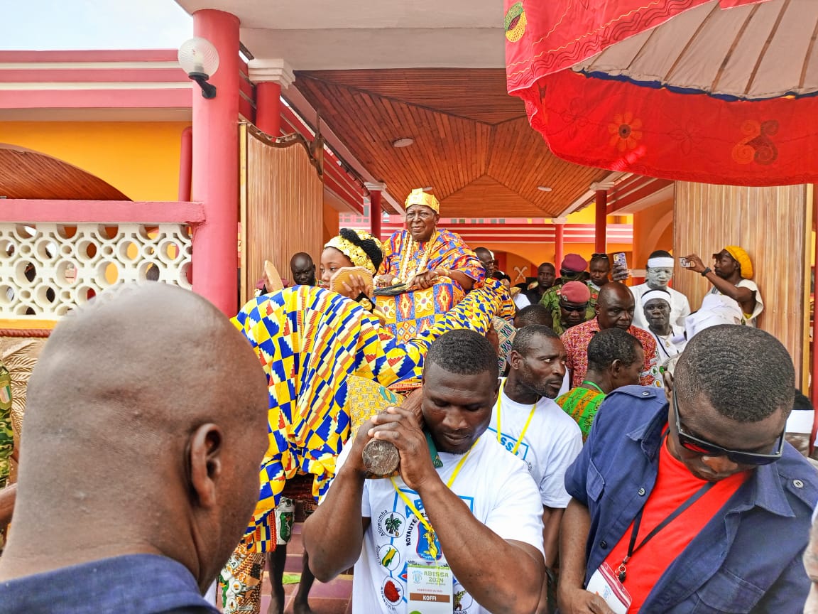 Son bain de foule à la place Abissa, à suscité un accueil qui lui est familier. Installé dans la tribune officielle avec ses invités, sa majesté Désiré Amon Tanoe a eu droit aux honneurs des chefs coutumiers N’zima Kotoko de tout le territoire national.