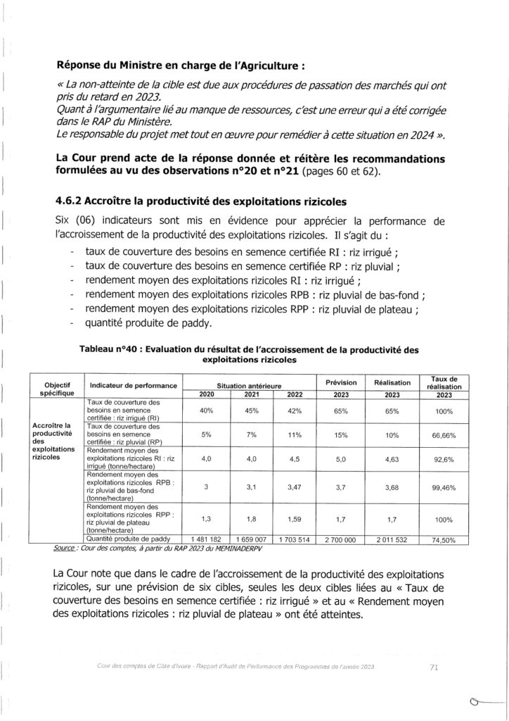 « Le Ministre en charge de l’agriculture prend acte de la recommandation. Les prochains RAP en tiendront compte »