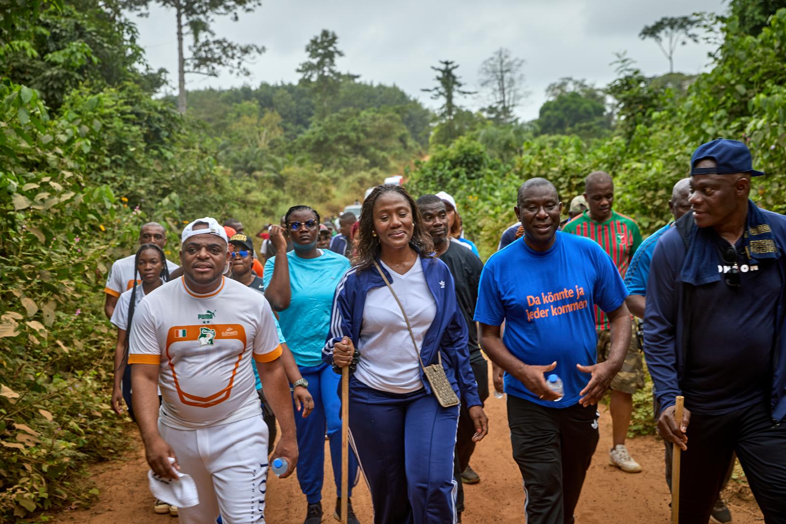 En prélude à la rencontre du bureau de la ligue des jeunes avec le Président Laurent Gbagbo le Samedi 23 Novembre, à Mama, son épouse a initié une randonnée tÎt le matin afin de dégourdir les hÎtes, à cette occasion, Mme Nadiany Gbagbo était entourée des responsables du Parti et anciens dirigeants de la jeunesse.