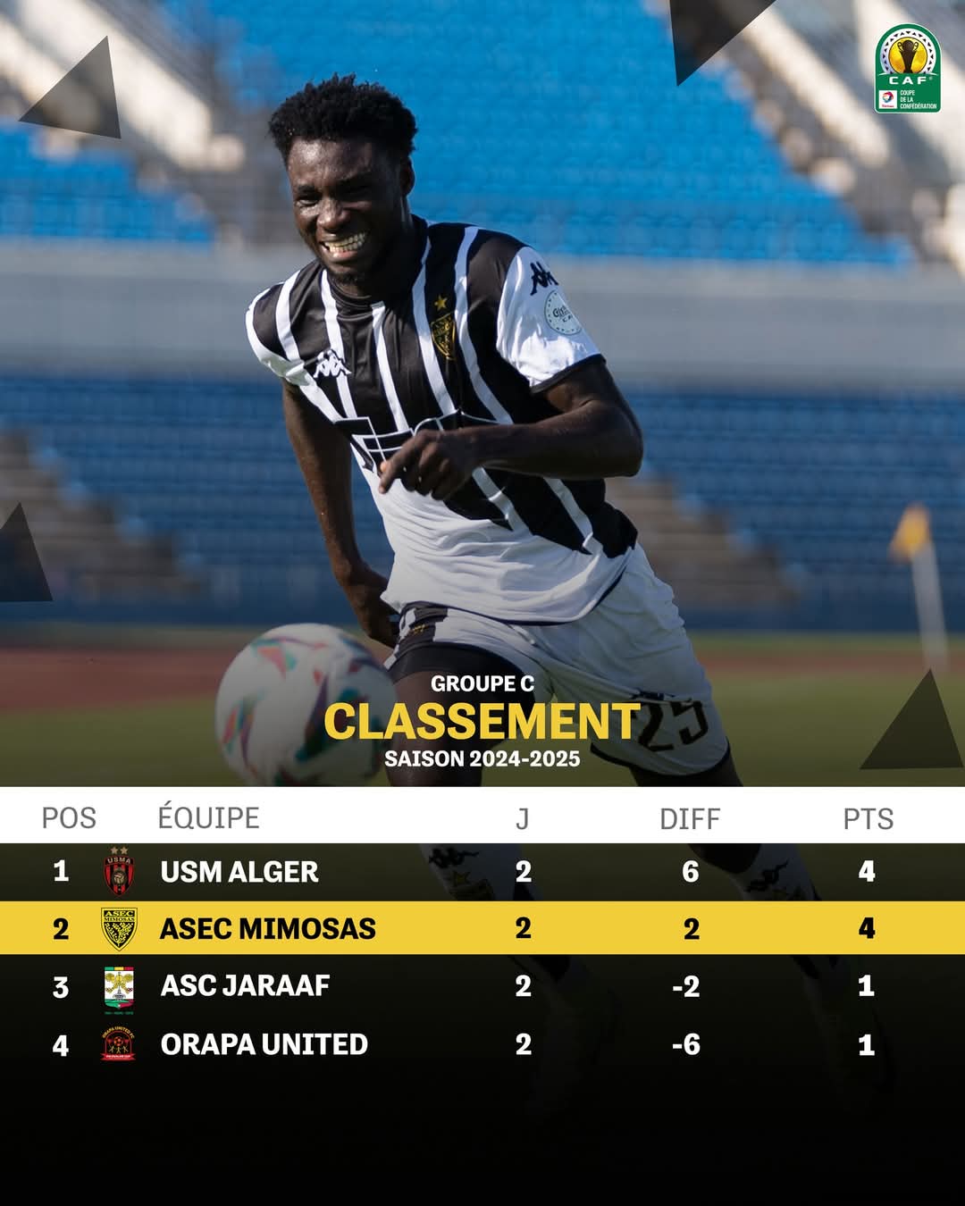 Après deux journées de compétition, 𝐥’𝐀𝐒𝐄𝐂 𝐌𝐢𝐦𝐨𝐬𝐚𝐬 𝐨𝐜𝐜𝐮𝐩𝐞 𝐥𝐚 𝐝𝐞𝐮𝐱𝐢𝐞̀𝐦𝐞 𝐩𝐥𝐚𝐜𝐞 𝐝𝐮 𝐆𝐫𝐨𝐮𝐩𝐞 𝐂 𝐚𝐯𝐞𝐜 𝟒 𝐩𝐨𝐢𝐧𝐭𝐬, 𝐚̀ 𝐞́𝐠𝐚𝐥𝐢𝐭𝐞́ 𝐚𝐯𝐞𝐜 𝐥’𝐔𝐒𝐌 𝐀𝐥𝐠𝐞𝐫.