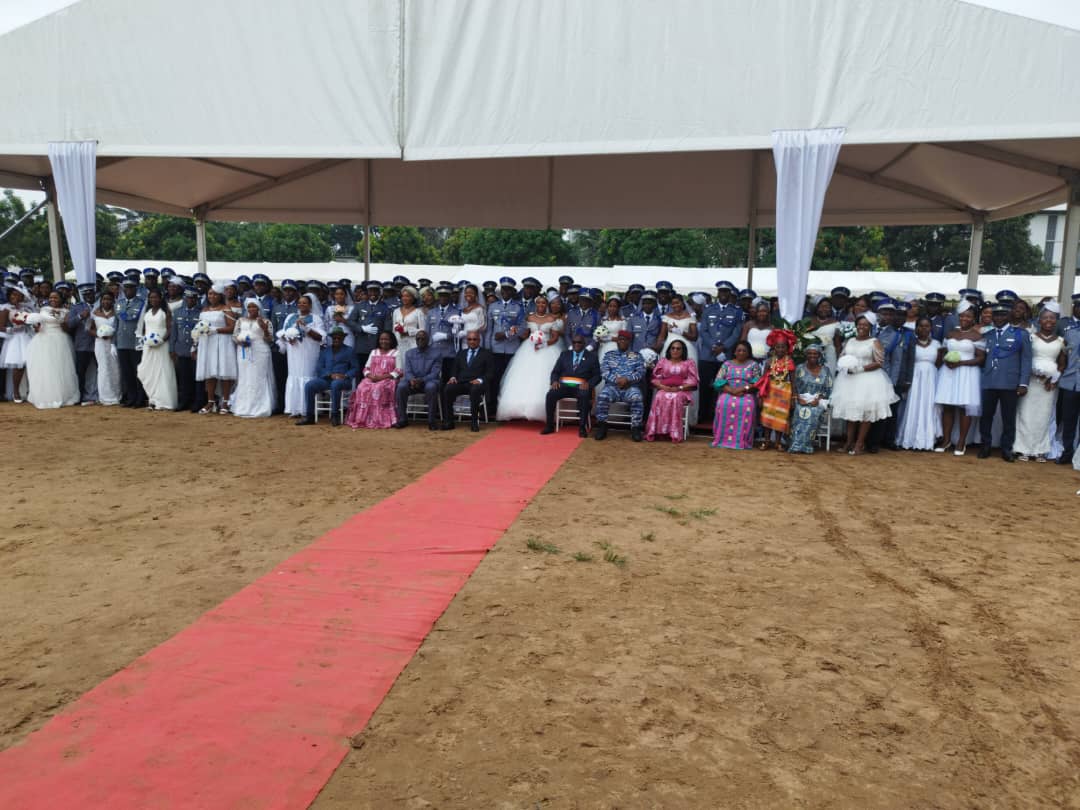 Ce sont six (06) officiers et 109 sous-officiers qui ont uni leur vie commune à leur promise ce vendredi 13 décembre 2024 sur le terrain de sport de la caserne d’Agban en présence de proches, d’invités et de leur famille respective. À l’issue de la cérémonie civile assurée par M. Sidibé Daouda, adjoint au maire de la commune d’Abobo, le Général Apalo Touré a expliqué le sens et l’objectif de ce mariage collectif. Le Commandant supérieur de la Gendarmerie nationale a indiqué qu’il s’agissait de la 4ème édition de cet événement qu’il a initié en 2021. L’objectif étant de minimiser les coûts de l’organisation et aussi d’inciter les gendarmes célibataires à sauter le pas.