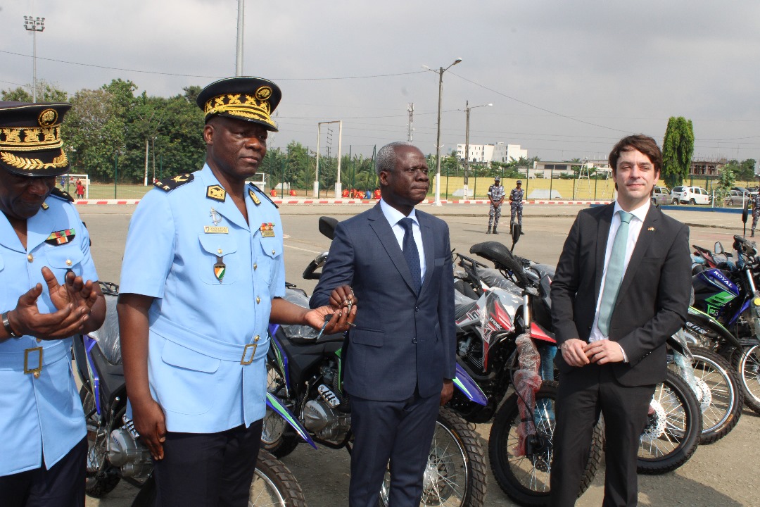 «Renforcement des capacités de la police en Côte d’Ivoire», la Coopération Allemande au Développement dénommée (GIZ) a procédé à la remise officielle d’un important lot de matériels et d’équipement à la Direction Générale de la Police Nationale. Ce don, qui est entièrement financé par le Ministère Fédéral Allemand des Affaires Etrangères, a un coût global de 148.000 euros, soit 97 millions de FCFA et est composé de matériels roulant, des équipements informatiques, du matériel et fourniture de bureau, et l’équipement de salles de transit et de repos pour les victimes des violences basées sur le genre (VBG). En clair, a fait remarquer le représentant de l’Ambassadeur de l’Allemagne, Mathias Klein, le projet entend rénover 8 bureaux d’accueil genre à Abidjan, Bouaké, Daloa et Bloléquin afin d’améliorer les conditions de travail des policiers et les conditions d’accueil des victimes. Mieux, a-t-il ajouté, le projet vise à améliorer le cadre de travail de la Coordination genre de la police nationale (CGPN) et des Bureaux d’accueil genre (BAG) des différents commissariats de police pour une meilleure prise en charge des victimes des VBG et l’accélération du processus de recueil, de dépôt et de traitement des dossiers des plaintes desdites victimes par la justice. A cela, il faut ajouter l’appui au renforcement du cadre institutionnel et juridique de lutte contre les VBG, l’élaboration des modules sur les VBG et la formation des policiers points focaux genre, des relais communautaires, l’organisation de campagnes de sensibilisations grand public et envers les acteurs de la chaine pénale sur les VBG, la rénovation, la réhabilitation des infrastructures de la CGPN et des BAG, etc. Au total, a-t-il conclu, ce sont 33 services des préfectures de police qui sont concernés par cette dotation dont, entre autres, 7 à Abidjan et 7 autres à Yamoussoukro, 5 à Bouaké et autant à Man. Visiblement heureux de ces dons, le Directeur de Cabinet Adjoint en Charge de l’Administration du Territoire, représentant le Ministre de l’Intérieur et de la Sécurité, Jean-Fructueux Bako a traduit toute sa reconnaissance au donateur. Il a ajouté que cette main tendue permettra à la police nationale de s’investir davantage dans la prévention du crime, la lutte contre les violences basées sur le genre, la criminalistique et surtout l’amélioration de la coopération entre les réseaux et organisations régionaux dans le domaine, de la criminalité transnationale organisée. Même son de cloche de la part du représentant du Directeur Général de la Police Nationale, Dosso Siaka, par ailleurs, Contrôleur Général de la police nationale, qui a fait savoir que ces dons seront utilisés de façon optimale afin d’en tirer le maximum de profits au bénéfice des couches les plus vulnérables de la société qui sont les femmes et les enfants, principales victimes du phénomène des violences basées sur le genre.