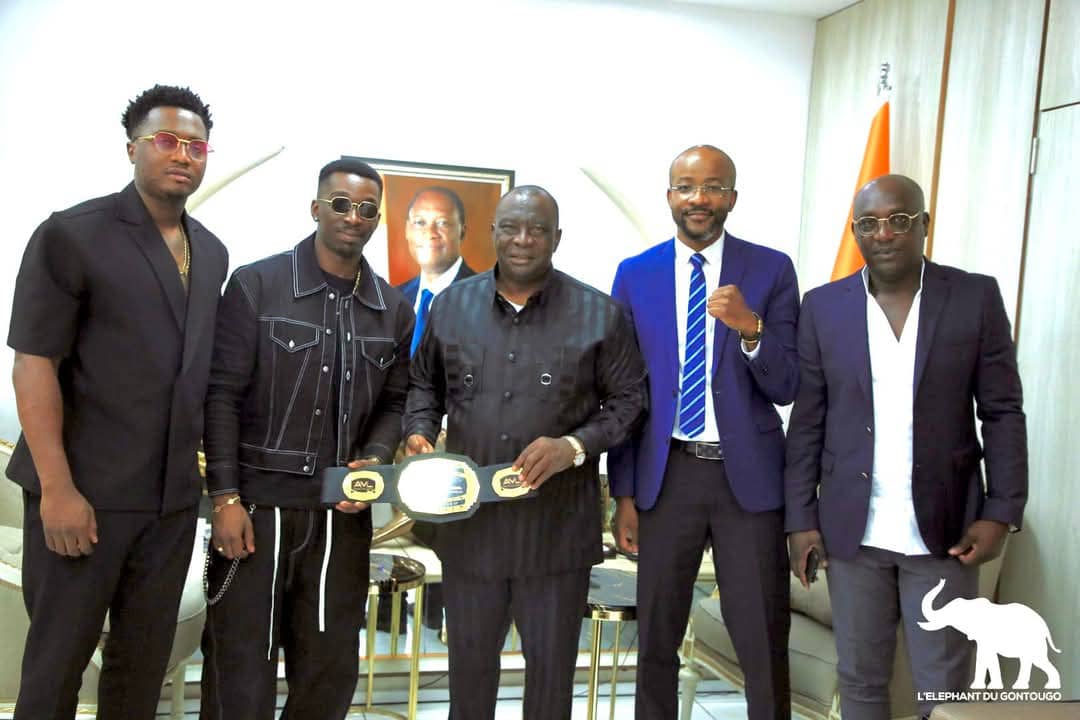 Après sa victoire à l’issue d’un combat de MMA organisé par l’Africa MMA League (AML), le samedi 1er février 2025, l’athlète Zigui Dona Salim, alias Kommander Samo Samo, a présenté sa ceinture au Ministre d’Etat Kobenan Kouassi Adjoumani le lundi 10 février 2025 à son cabinet.