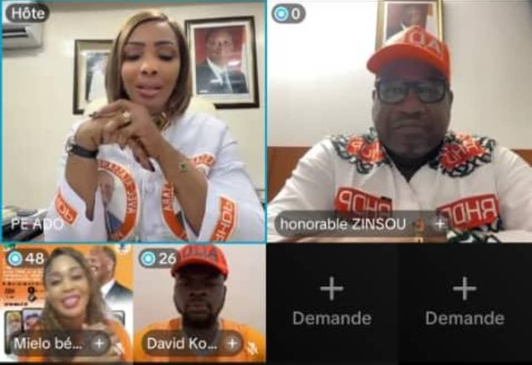 À la manœuvre, deux voix politiques majeures, l’Honorable Marcel Zinsou, député d’Aboisso et vice-président du mouvement PE-ADO, orateur principal de la soirée, et l’Honorable Adjaratou Traoré, présidente du mouvement, qui co-animait le meeting avec son élégance et sa verve coutumières. Pendant plus de deux (02) heures de live, ces deux figures ont captivé les internautes par un dialogue dense, étayé de chiffres, de réalisations et d’analyses prospectives.