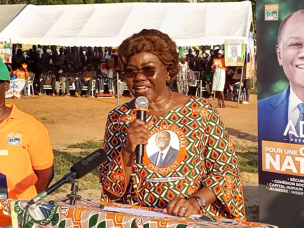 En campagne dans le Bounkani, la ministre Nialé Kaba, directrice régionale du RHDP, a animé un grand meeting à Téhini où elle a présenté les acquis du président Alassane Ouattara et les nouvelles ambitions du parti au pouvoir.